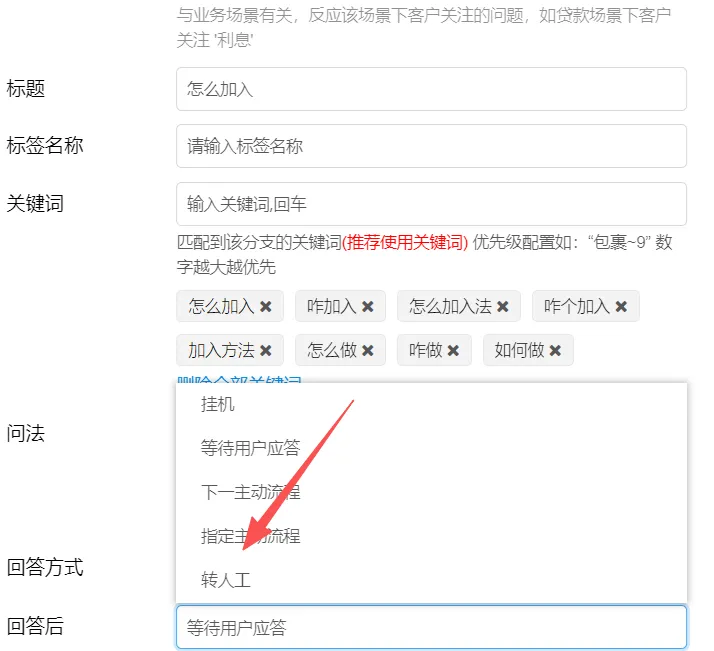 4. 一键人机切换,当客户表现出兴趣或者提出的问题机器人解决不了时可以直接转接人工客服跟进,增加成功量。