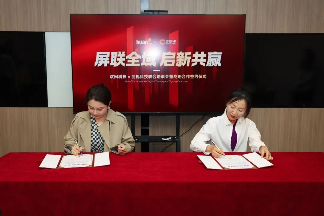 继宣布共建「跨场景生活圈媒体矩阵」之后,国内领先的智能大屏服务商欢网科技与全域智能营销服务商创视科技的合作迈入全新阶段。4月16日,双方正式举行战略合作签约仪式,并同期启动“屏联全域,启新共赢”联合培训会。