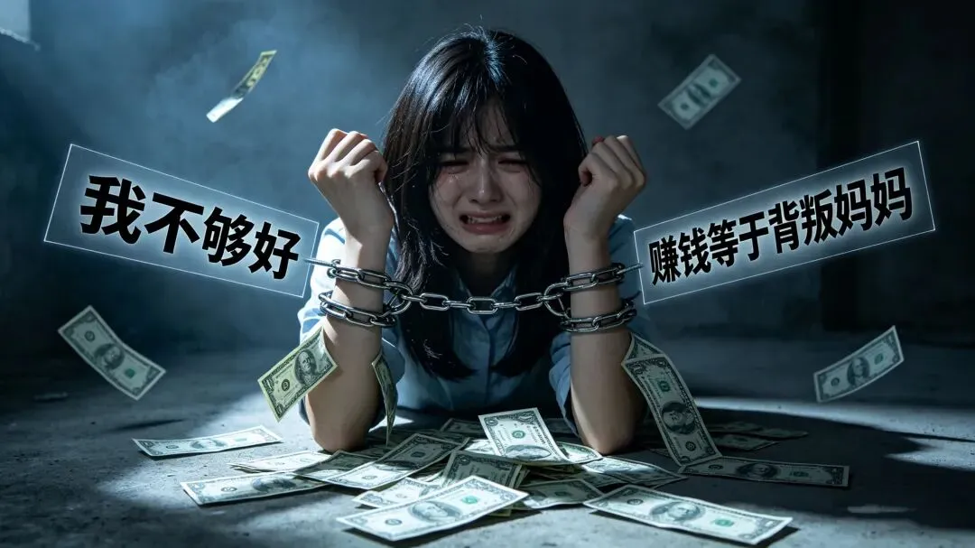 所以她潜意识里认为“赚钱=被嫌弃、被抛弃”,她就觉得:“那我无能什么都不做妈妈就不会嫌弃我、抛弃我了”所以她永远不行动,永远赚不到钱。