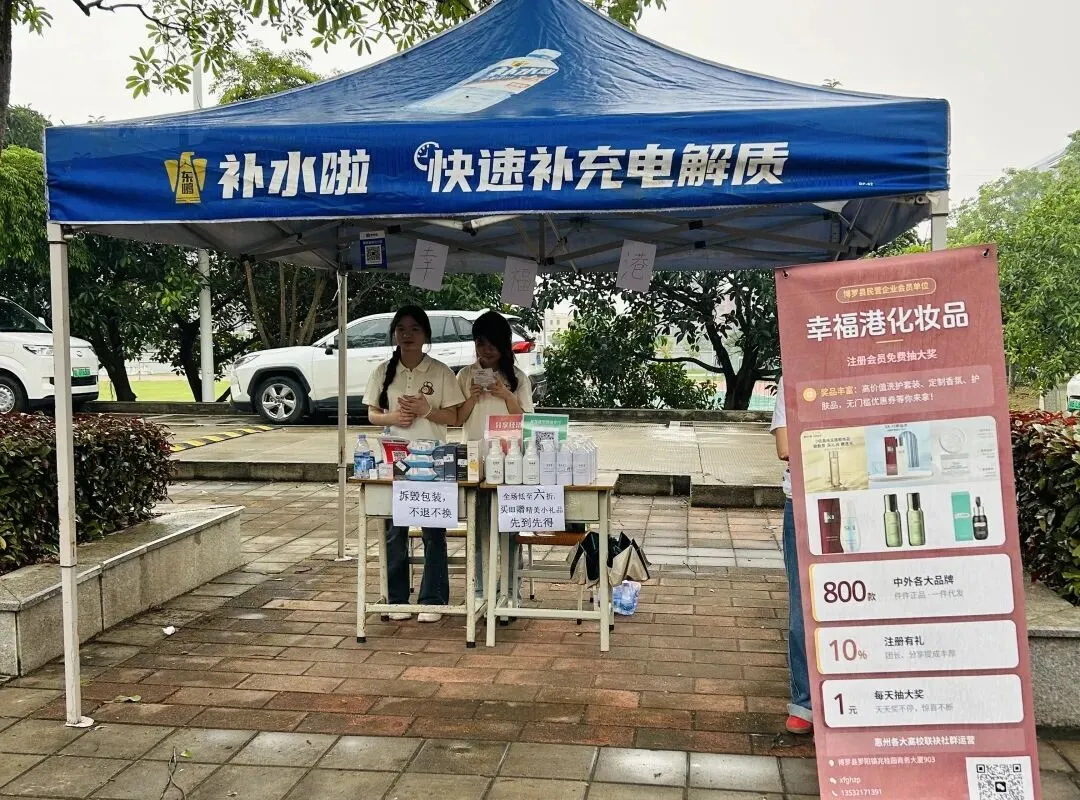 惠州城市学院营销节火热进行中!幸福港化妆品诚邀各位同学赴约,解锁平价正品美妆,共赴青春美丽之约