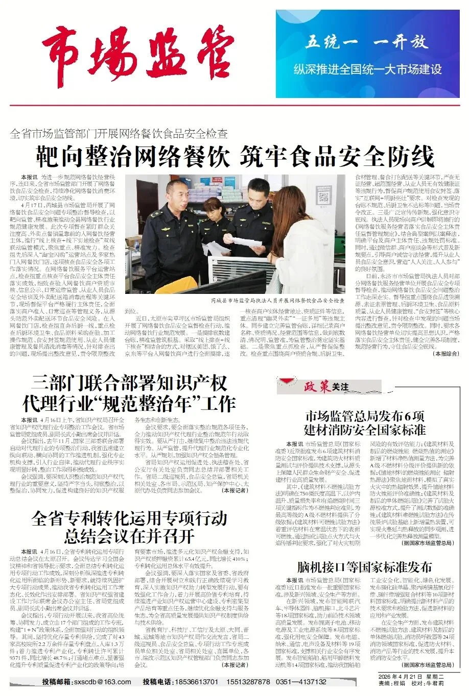 亲爱的读者,最新一期的《市场监管周刊》与您见面了。我们将继续为大家呈现本报的精彩内容。