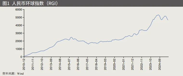 随着我国经济实力的增强与对外经贸往来的日益密切,人民币在国际经贸中的使用持续扩大。2009年人民币国际化进程启动以来,人民币通过贸易与投资渠道逐步实现跨境流通,推动离岸人民币市场进入快速发展阶段,人民币离岸金融市场发展水平持续提升。图1展示了人民币环球指数(RGI)的演变。自2010年基期设立以来,RGI整体呈现持续上升态势:RGI经历了2011年至2014年的初期快速扩张后,2015年至2019年进入调整与巩固阶段,指数在1700~2200区间震荡,2020年以来重拾升势,并于2024年中期一度突破5300点,显示出离岸人民币的国际化程度不断增强。尽管近期指数有所波动,但整体仍处于历史较高水平,表明人民币离岸金融市场已形成一定规模,并在国际化进程中展现出良好的发展韧性。