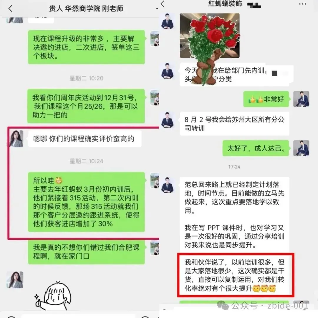 苏州红蚂蚁装饰,2019 年集团副总裁、营销总监及核心市场负责人专程赴武汉学习,现场即敲定 3 月首场企业内训;董事长李荣全程参与后,当即锁定 5 月第二场深度赋能。