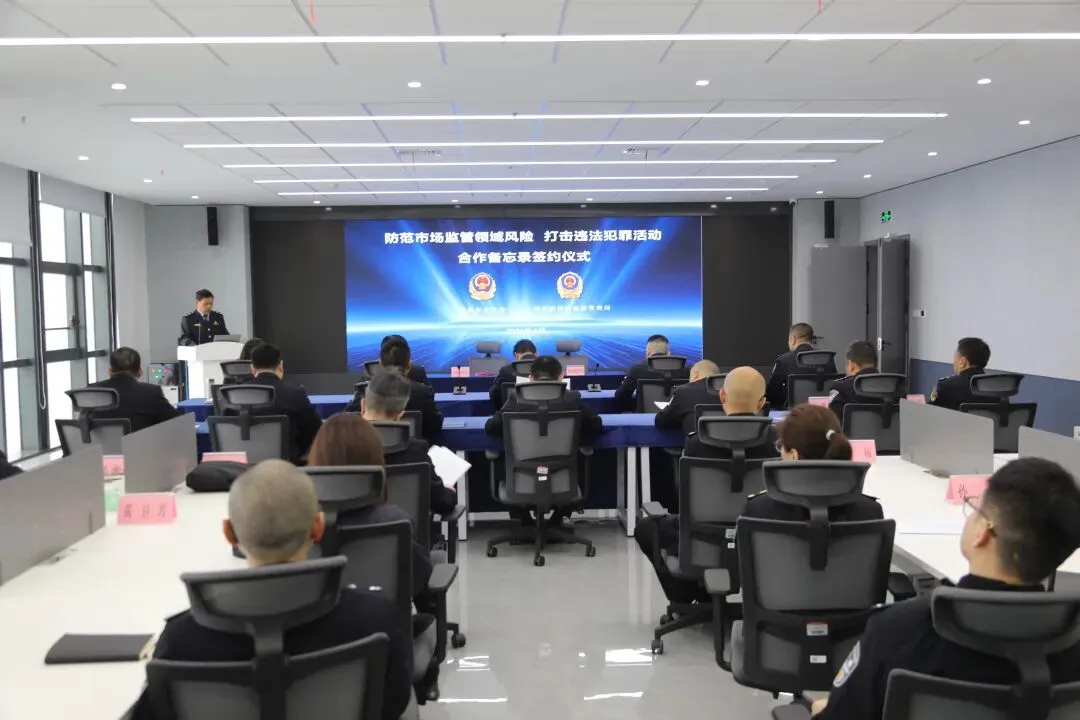 为深入贯彻落实市委、市政府关于统筹发展与安全、防范化解重大风险的工作要求,4月21日上午,郑州市公安局与郑州市市场监管局在市市场监管局网监分局正式签署《防范市场领域风险 打击违法犯罪合作备忘录》。市市场监管局党组书记、局长姚志伟,市公安局党委委员、副局长王永新,市委金融办四级调研员刘永俊 及相关部门负责同志参加签约仪式。根据备忘录,两部门将建立行刑衔接、信息共享、执法联动、风险会商、共建共治五大机制,构建“数据共享、情报共研、案件共办、风险共处”的常态化工作模式,打造网上网下一体化治理新格局。