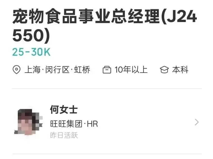 近期,食品巨头旺旺集团在招聘平台公开招聘“宠物食品事业总经理”,岗位职责涵盖战略规划、工厂运营、产线布局、团队建设及成本控制等全链条环节。这一动作迅速引发业内关注,也被外界视为旺旺加码宠物食品业务的一个信号。