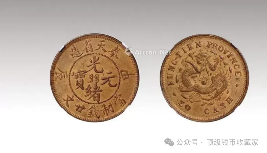 拍品描述:奉天市面流通货币紧缺,奉天当局将奉天造币厂改名奉天银元总局,开铸银、铜元。此际铸造的银元不再是元、角、 分,而是以库平两、钱、分、厘为纪重单位。该年特地铸造了一枚光绪元宝奉天省造当制钱廿文,该币正面上镌“奉天省造”、中间镌“光绪元宝”、下面镌“当制钱廿文”,正中为满文。该币反面内圈镌龙图,外圈镌英文。重量11.9克。珠圈内满汉文“光绪元宝”,上环“奉天省造”, 下环“当制钱廿文” “光绪元宝”四个字,字体俊秀。[光]字最后一笔竖弯勾,做了一个鸟的造型,鸟嘴紧连[光]字一瞥。光绪的[绪]字中间那一瞥,仿佛刀柄,一刀刺进了[绪]字的心脏。[元]字,锤击鸟眼,有吸干大清元气之意。[宝]字的宝盖上面一点,探出宝盖下方,字体写的柔弱飘逸。
