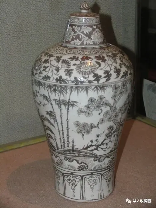 明洪武 釉里红岁寒三友纹带盖梅瓶