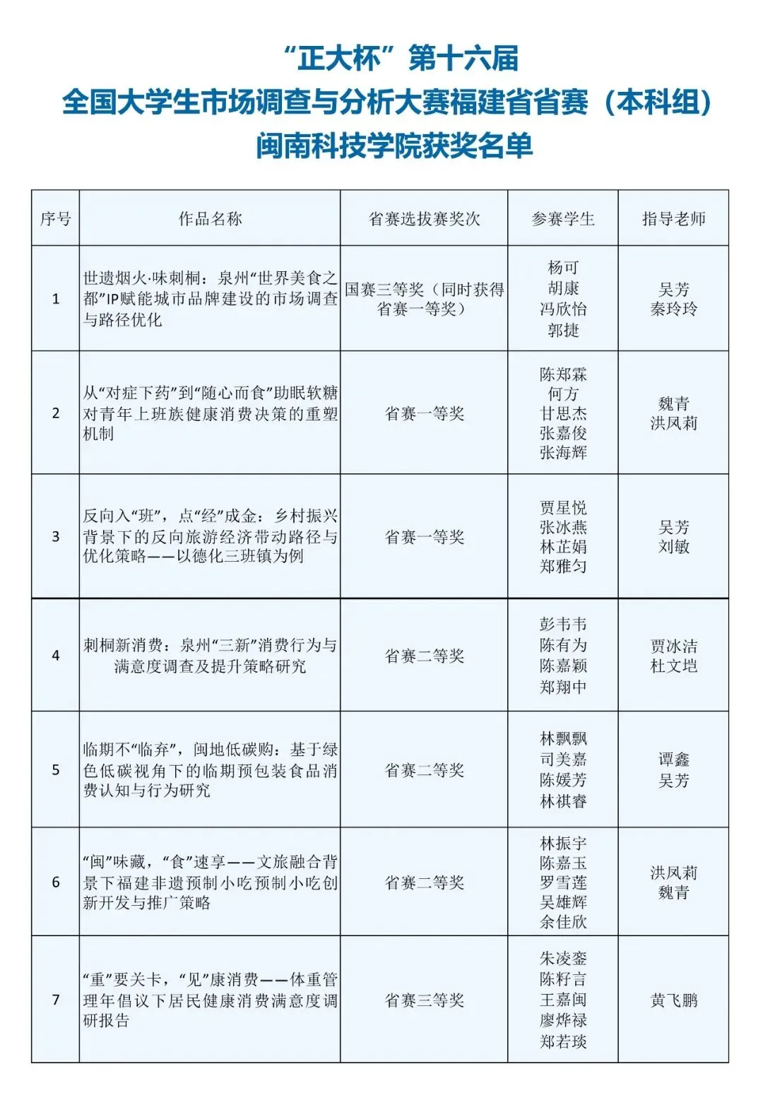 近日,“正大杯”第十六届全国大学生市场调查与分析大赛福建省本科组线上赛获奖结果公布。我院学子奋勇拼搏、表现突出,共获得国赛三等奖1项、省赛一等奖2项、二等奖3项、三等奖1项的好成绩,充分展现了我院学子扎实的专业素养、突出的实践能力与良好的团队协作精神。
