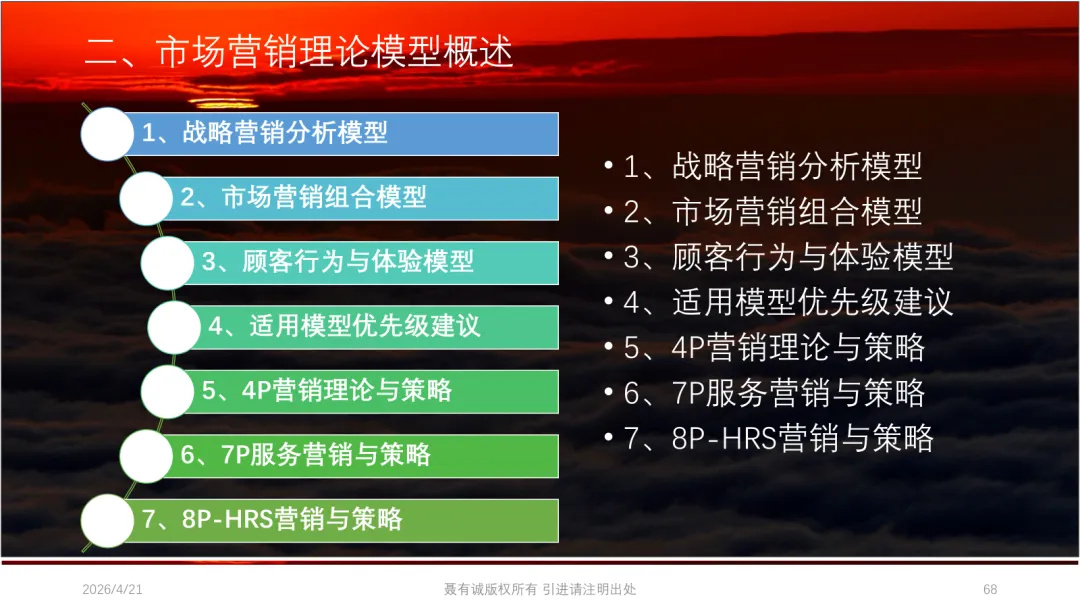——营销工具选择:推荐使用SWOT分析、PESTEL分析、4P到7P营销模型,建议从业者学习营销和客户服务相关书籍,产品、人才、服务、科技、商业模式是行业五个核心维度。