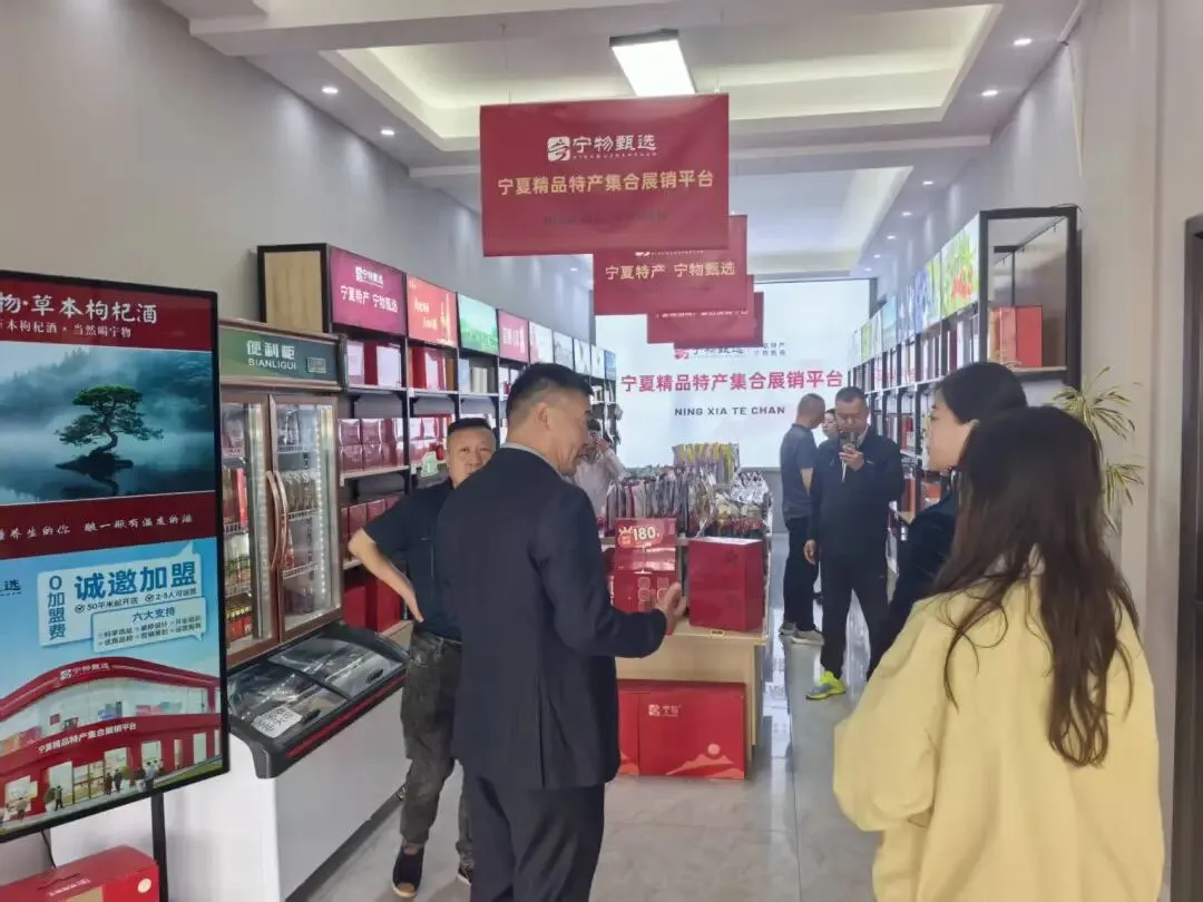 团队首先走进已入驻平台的实体商家——宁物特产旗舰店。运营总监王三矿与店铺负责人亲切交流,详细解读平台针对实体商家的活动扶持政策,鼓励商家: