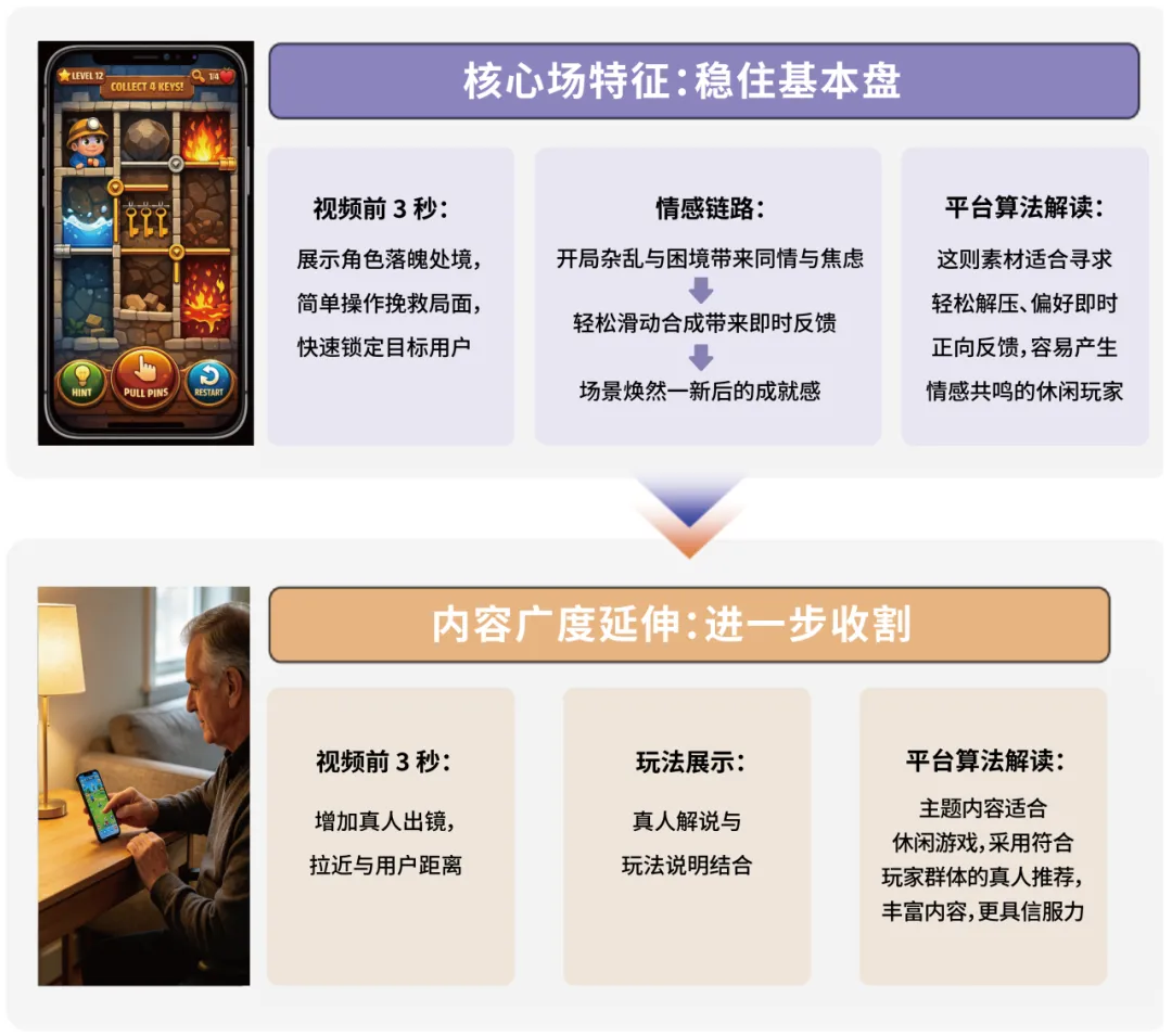现在的游戏投放逻辑变了:不再是“先投人,再看素材”,而是“先理解素材,再反向定义人群” 。 素材本身,已经成了写给算法的“用户识别代码” 。