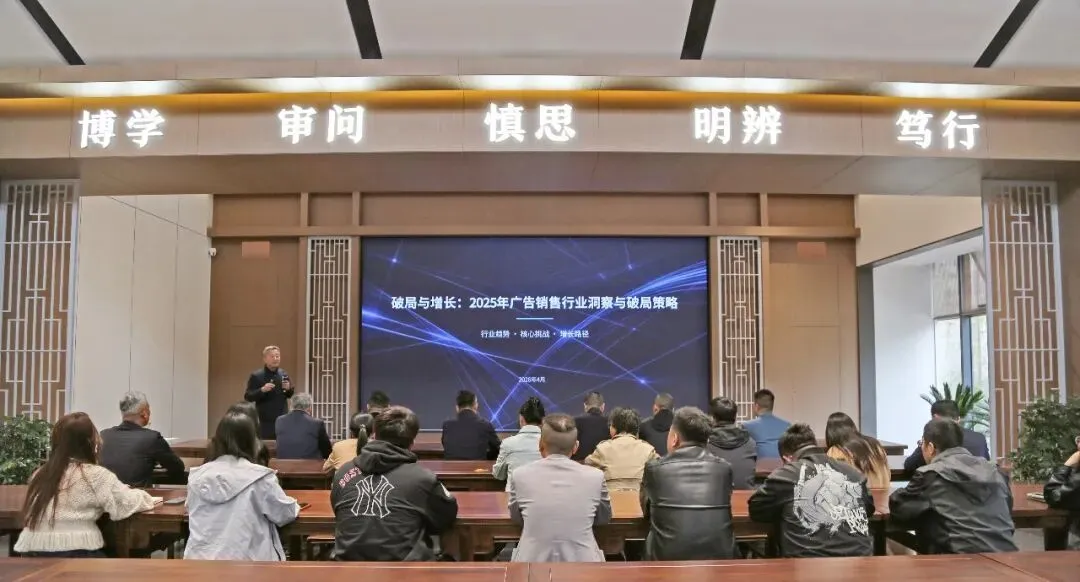当前,户外广告行业正经历深刻变革,市场环境的变化,AI、大数据、程序化广告等新技术层出不穷,深刻改变着广告行业的底层逻辑与生态,客户需求的迭代, 让“如何高效获客、实现业务增长”成为每一位广告人亟待破解的课题。为赋能行业同仁破局突围、交流共进,临沂市广告协会特邀名誉会长刘海山开展专题分享,于4月22日上午在鲁南制药集团明德讲堂召开“户外广告营销交流座谈会”。会长、党支部书记陈胜国,秘书长王康如,常务副会长许吉海,副会长赵清雷、宋广全以及协会理事、会员单位负责人及营销骨干齐聚一堂,共同学习、共商发展