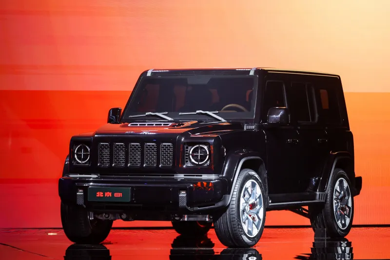 北京 81 定位战术方盒子,传承北汽军车制造标准,采用非承载式车身与两纵八横加强大梁结构,抗扭刚性优异。底盘搭载前双横臂独立悬架、后五连杆非独立悬架,硬核越野调校兼顾极限场景与日常使用。