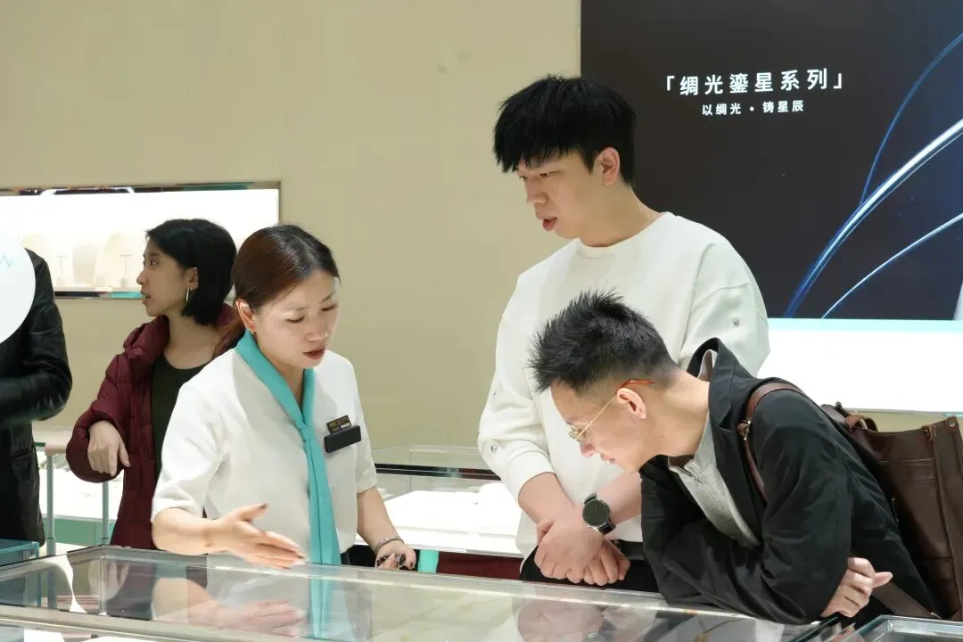4月16日上午,考察团造访了萧山万象汇负一层珠宝区,通过与品牌导购的介绍,实地了解门店运营、消费者画像、热销产品、陈列布局、促销策略等一线信息。考察团成员对零售端的产品需求有了更直观的认识和思考,为“宝创协”会员未来在产品研发、品牌化与差异化发展提供了清晰指引。