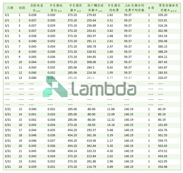 根据P参考,i,t 的公式,P参考,i,t 由K值暂时取1,△Pi 为当月i日中长期合约电费平均价格,以2025年3月为例,当月形成31个△Pi,形成31*24=744个P参考,i,t。