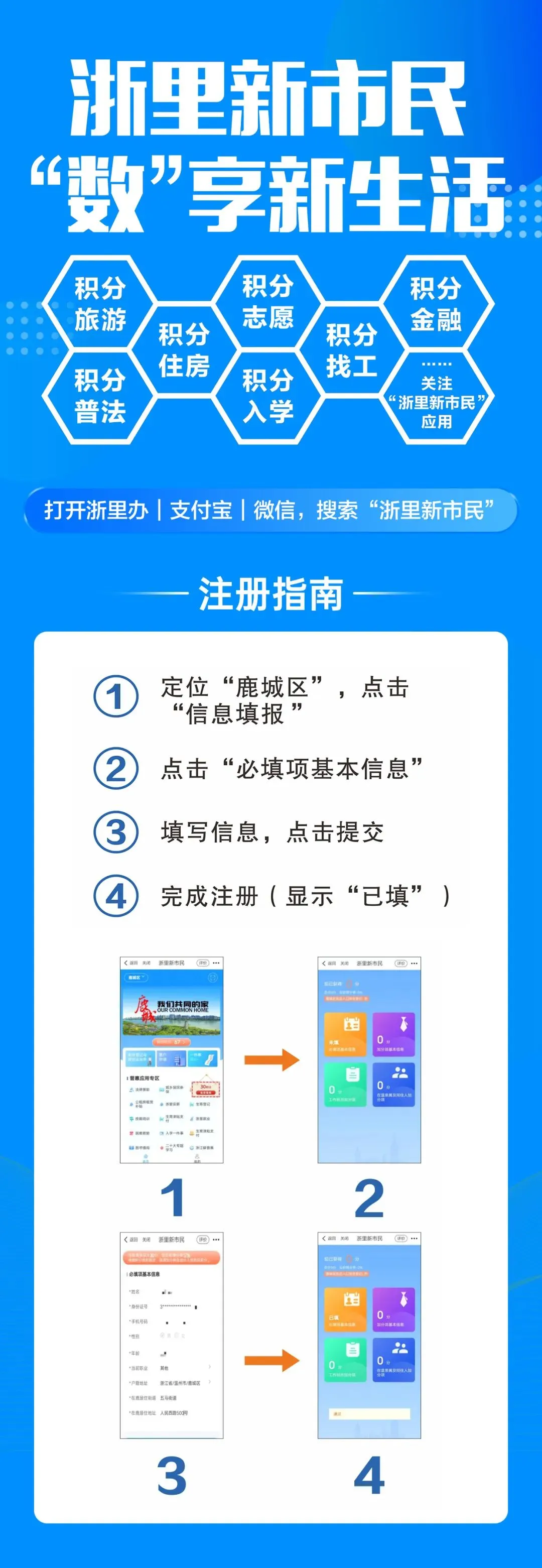 回复“1”查看 显示“鹿城新居民”公众号二维码图片,立即转发邀请!
