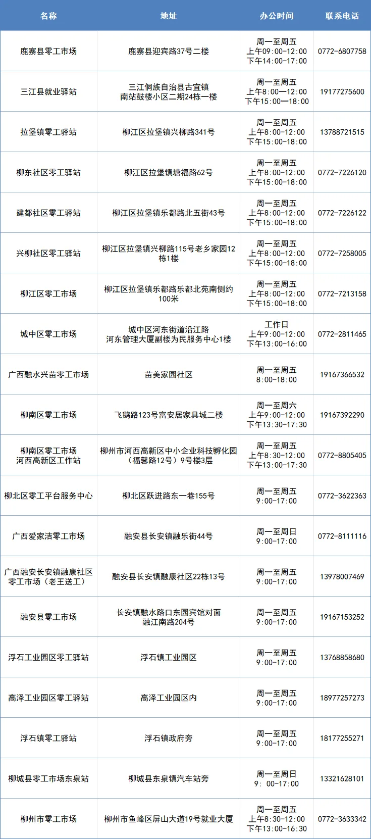 想找零工?家门口有!柳州市20家零工市场为您服务,求职登记、灵活就业一站搞定!