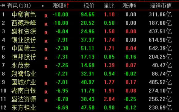 贵金属板块下挫,湖南白银、恒邦股份跌超7%,招金黄金、山金国际、晓程科技跌超6%。CPO概念股高开低走,赛微电子、腾景科技、东田微、光库科技等多股超10%。稀土永磁概念股走弱,英思特跌超10%,中稀有色跌停。