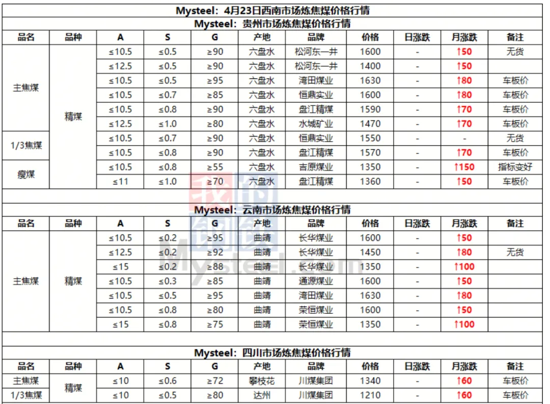 23日西南市场炼焦煤偏强,本月主流煤矿月度价均上调。目前区域内主流煤矿生产基本恢复,但部分产量尚未完全正常,焦煤资源整体仍显紧张,云南个别煤矿产量仍在恢复。下游来看,主流焦钢采购情绪一般,多按需补库,预计炼焦煤价格短期暂稳。