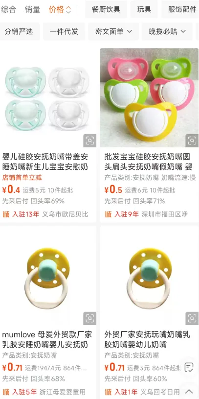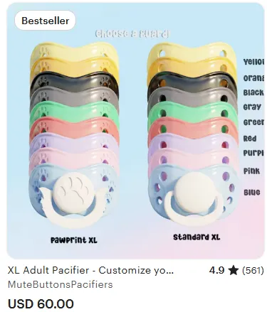 成人奶嘴在国内的进货价1-3元,但在Etsy上可以卖10-60美元,利润率500%-2000%。