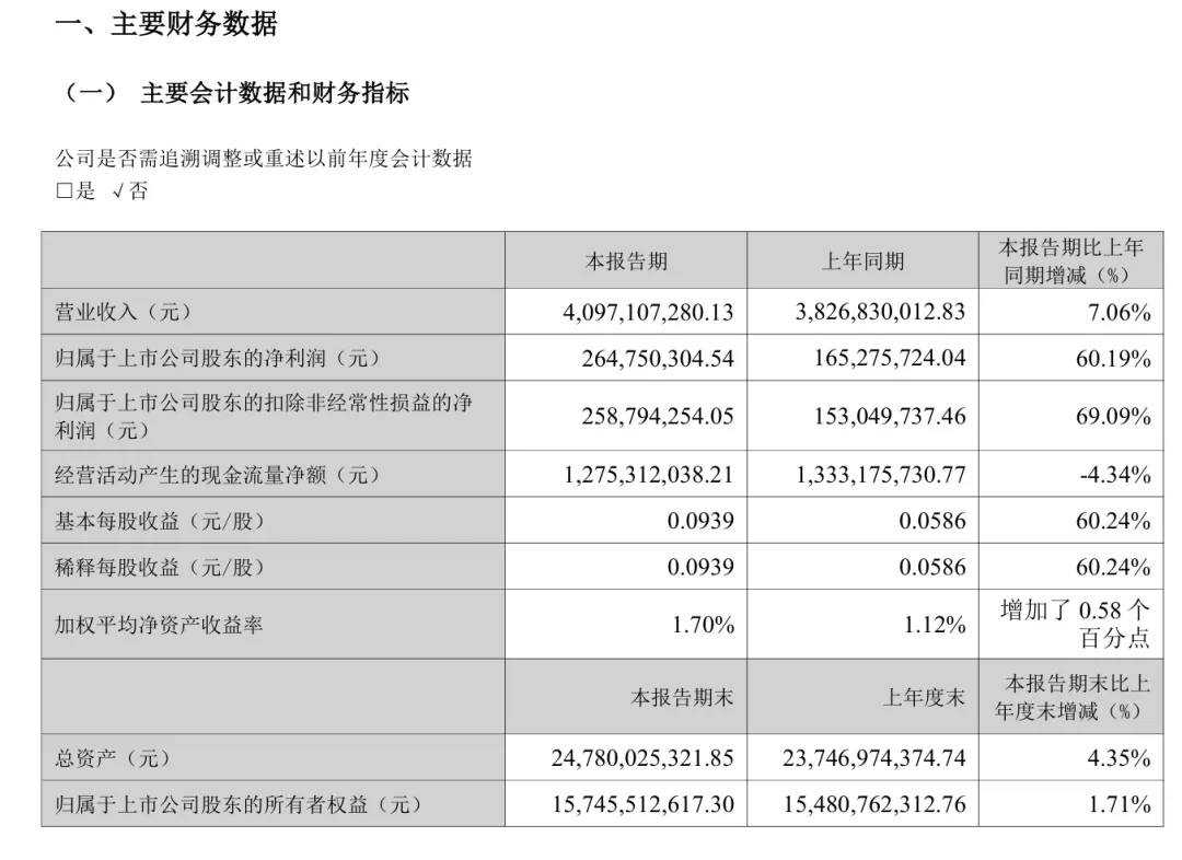 4月23日,燕京啤酒发布公告,2026年第一季度营收为40.97亿元,同比增长7.06%;归属于上市公司股东的净利润2.65亿元,同比增长60.19%。