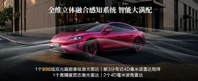 这两款车是华为和上汽联手打造的重磅新车。它们最大的亮点是:所有车型,哪怕是最低配,都标配了华为最先进的乾崑智驾ADS 4.1系统,以及一个896线的激光雷达(一种高精度的“眼睛”)。