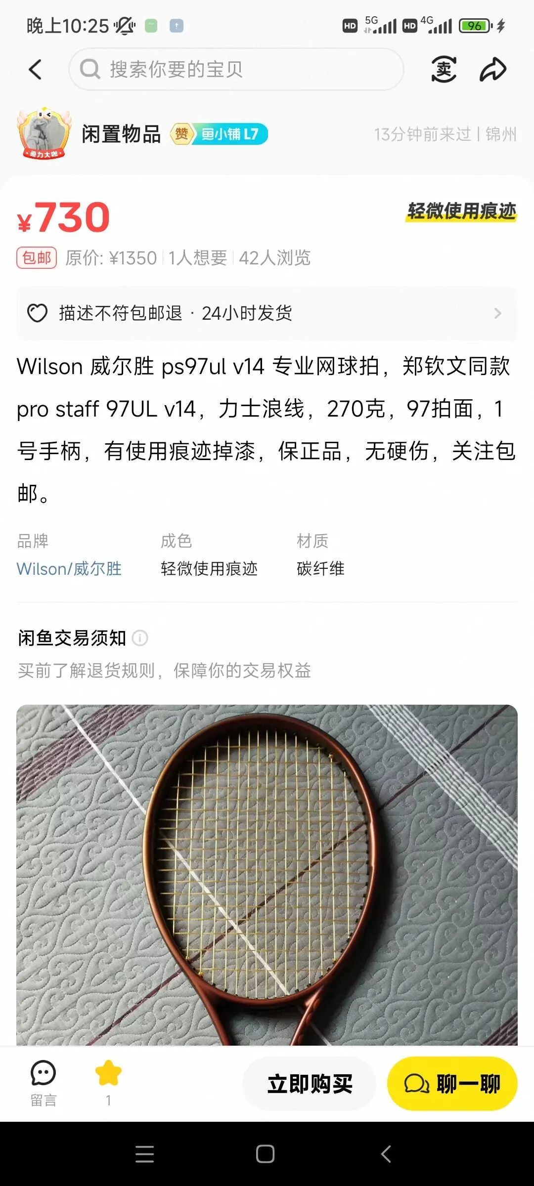 李娜同款参数,价格仅需 最新款 25版一半左右。卖家信用极好,描述实在,非常适合日常训练或作为备用拍,“随便造”也不心疼。