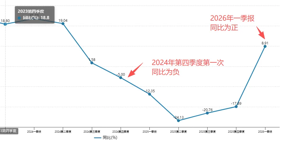 因为没有这么突然的,还是看上面迎驾贡酒的财报,2024年第四季度的营业收入近些年第一次为负,同比-5%,2025年第一季度同比-12.35%,然后是-24.13%、-20.76%、-17.89%,这中间是有个过程的,形成了一个谷底然后再回升。