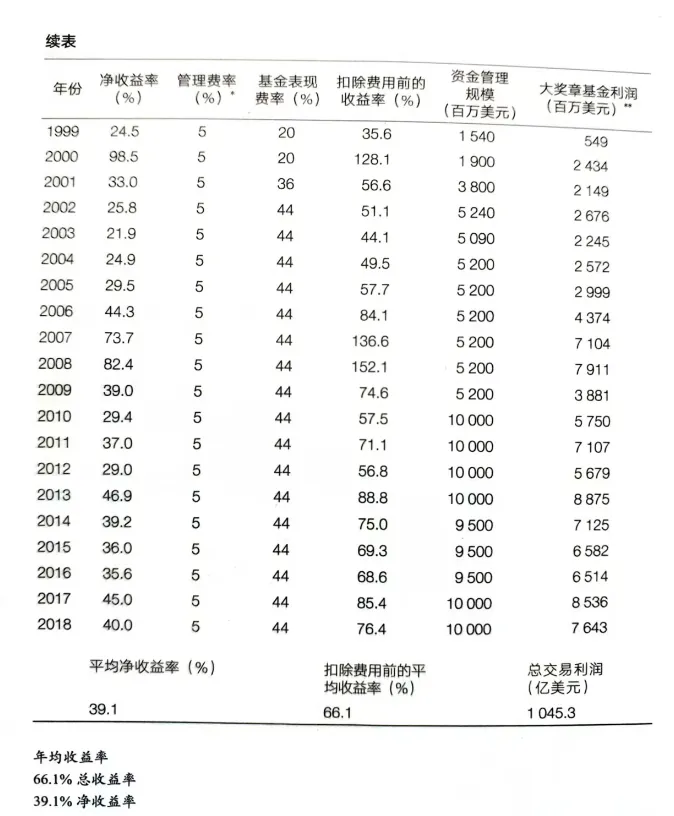 这位量化的传奇人物,在2024年5月去世,他创立的大奖章基金是量化领域里绝无仅有的存在。从1988年到2018年,30年的时间,基金的平均年化净收益率是39.1%,而且这是扣除了管理费和业绩提成后的回报,扣费之前的是年化66.1%