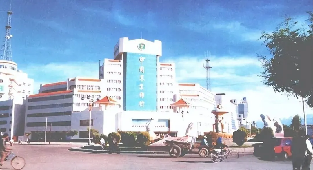 这楼在当时可是个稀罕物,蓝玻璃贴得亮堂堂的,大老远就能看见那反光,像是给这条灰土土的街道镶了道亮边,门口那几根柱子粗得俩人抱不过来,那时候觉得银行里肯定藏着金山银山,路过的时候都忍不住要把背挺直了,生怕让人看扁了,门口停着的三轮车还带着泥点子,跟这光鲜的大楼一比,就像是穿着新衣裳的娃娃手里还攥着把泥巴,透着股子说不出的鲜活劲儿。