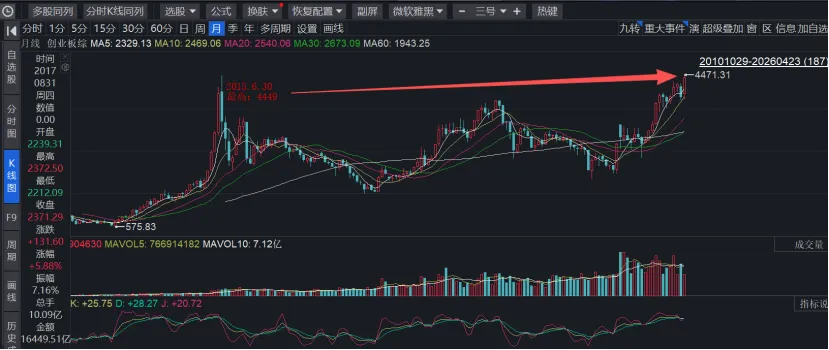 2026月 23日,创业板综指直接突破 2015 年大牛市的历史高点,盘中最高摸到4471.31