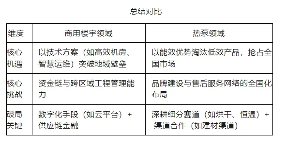 聚焦商用楼宇与热泵这两个细分领域,有助于更清晰地洞察全国统一大市场带来的系统性变化。尽管二者同属暖通行业,但因商业模式、技术路径及客户群体存在差异,在统一大市场背景下所面临的机遇与挑战呈现出明显不同。以下是对这两个领域的深入分析: