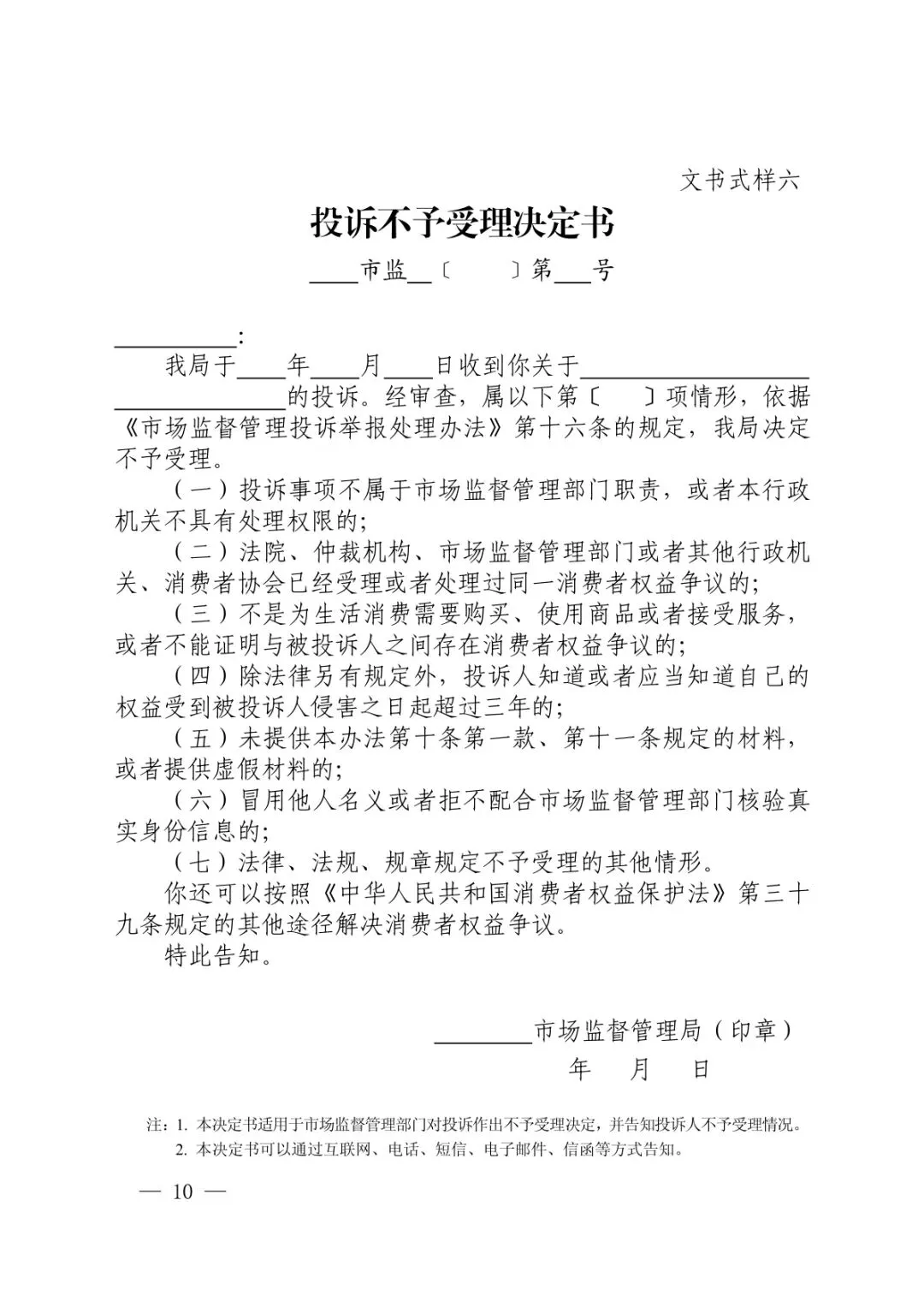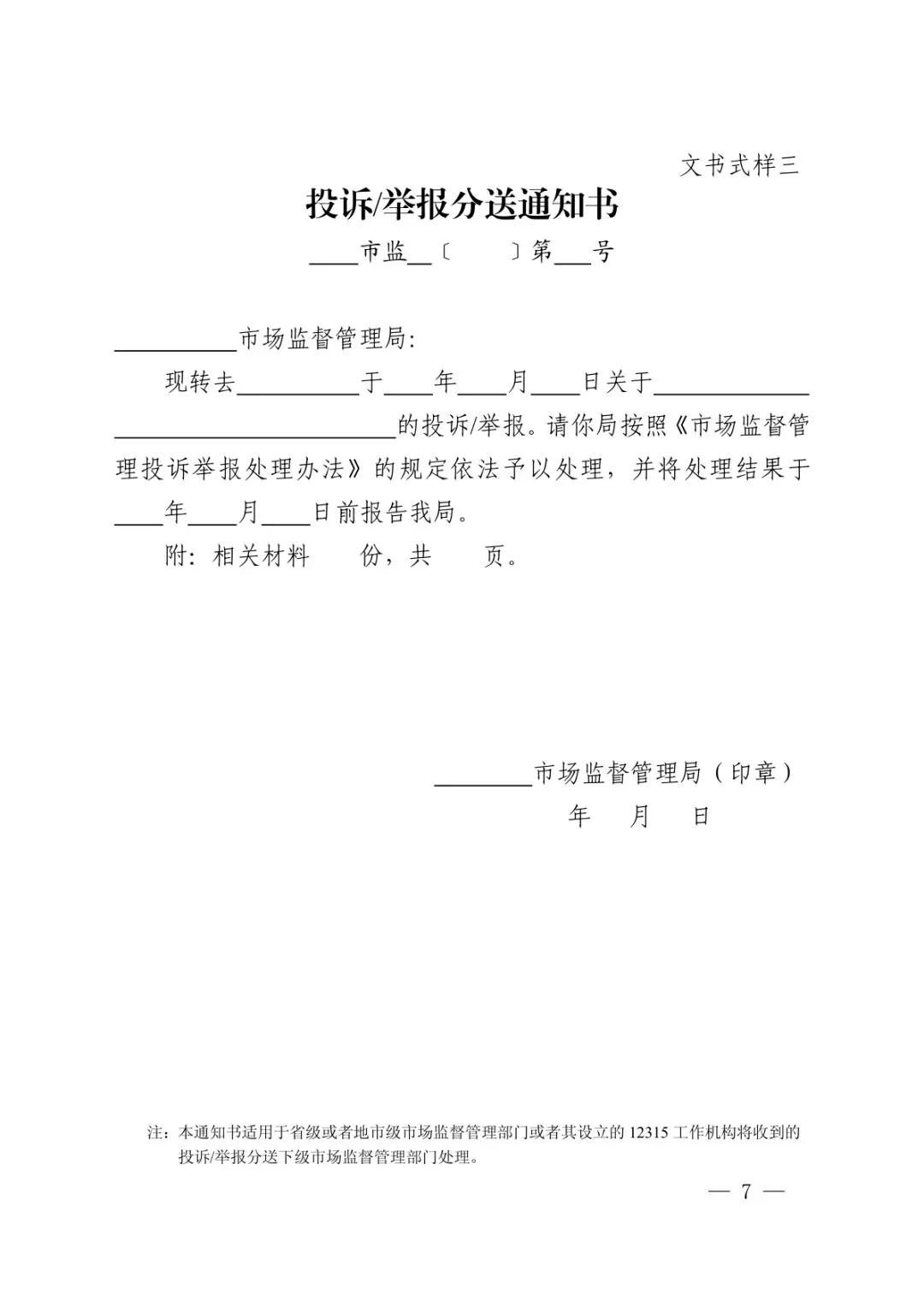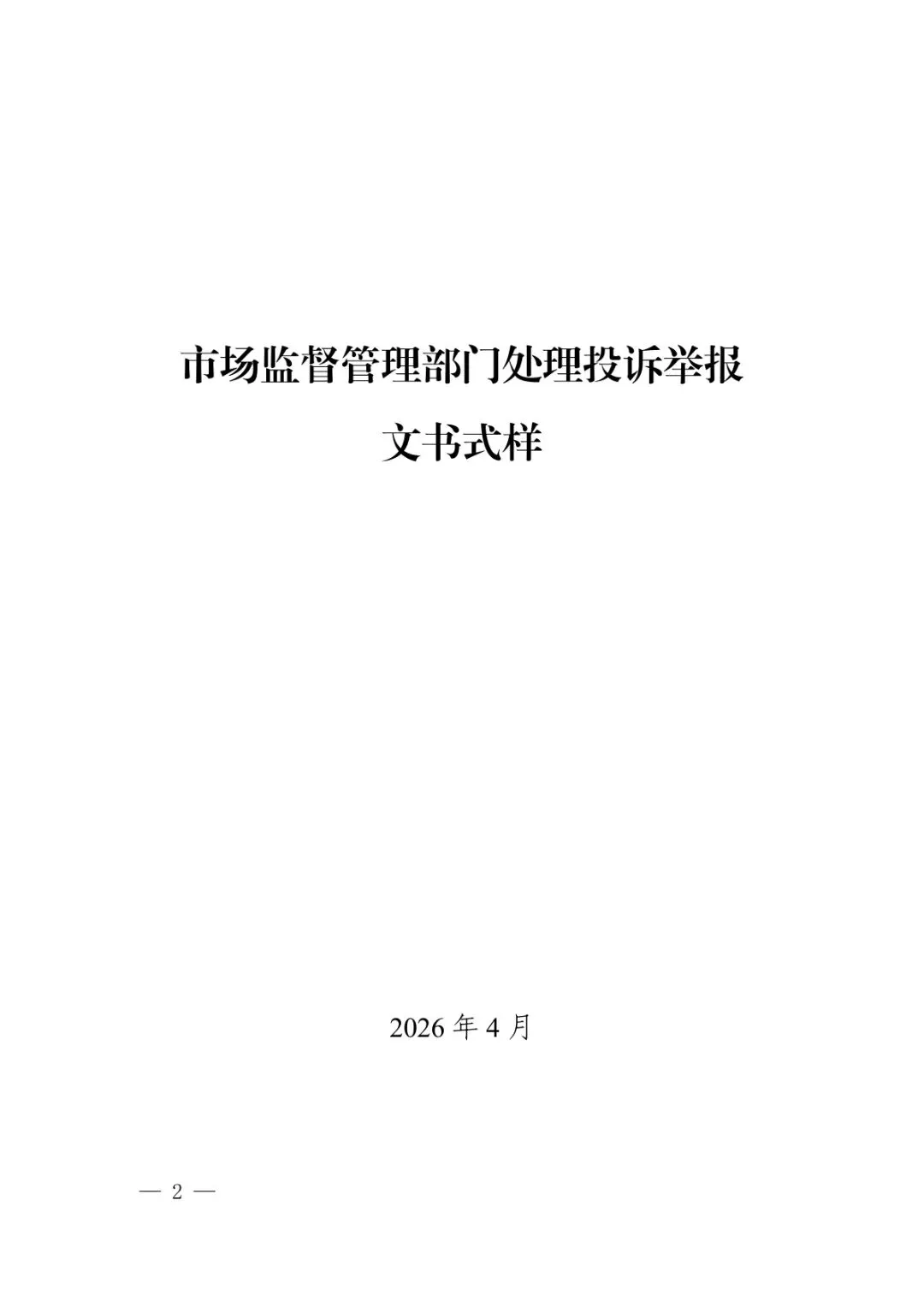新!市场监督管理部门处理投诉举报文书式样(2026新版)