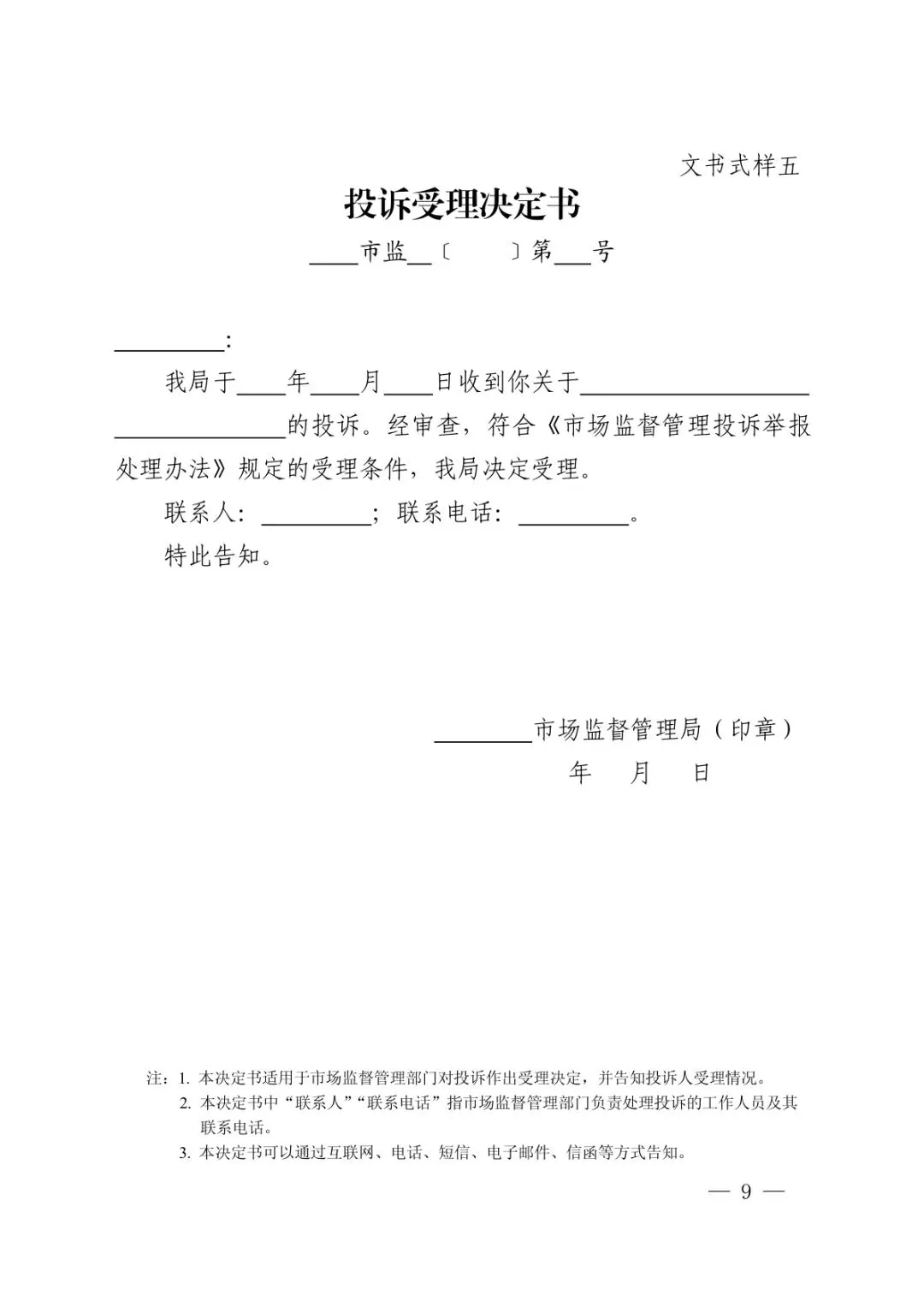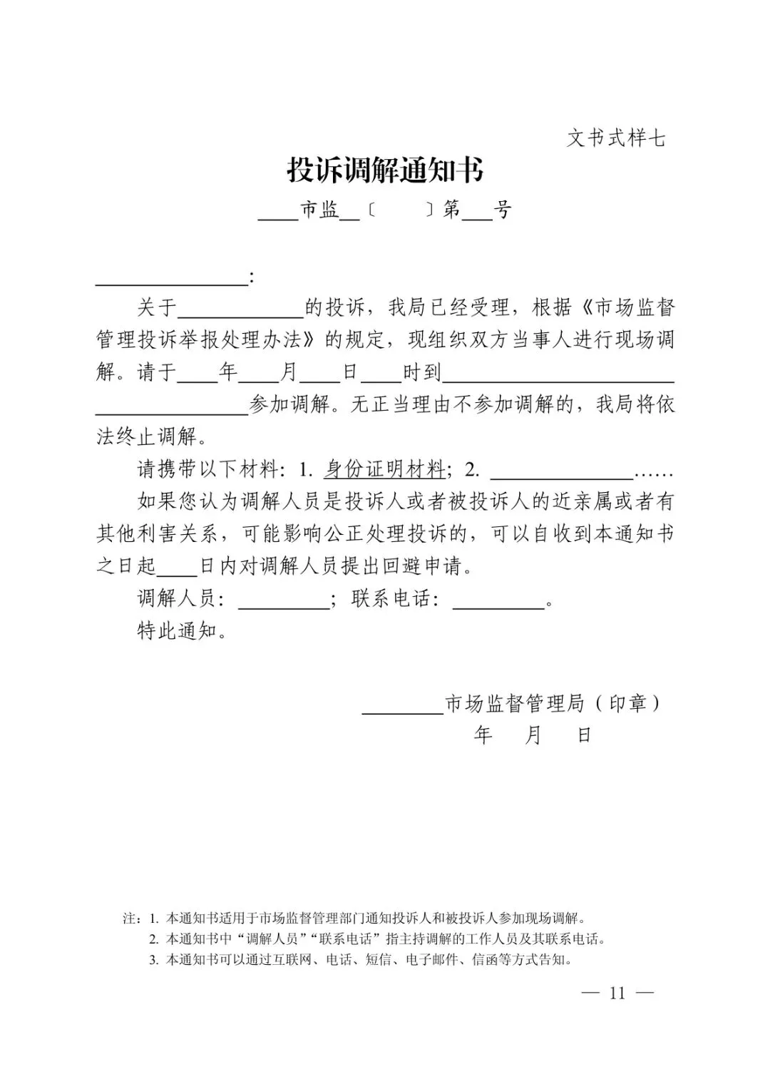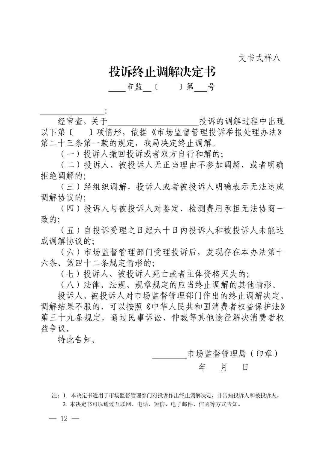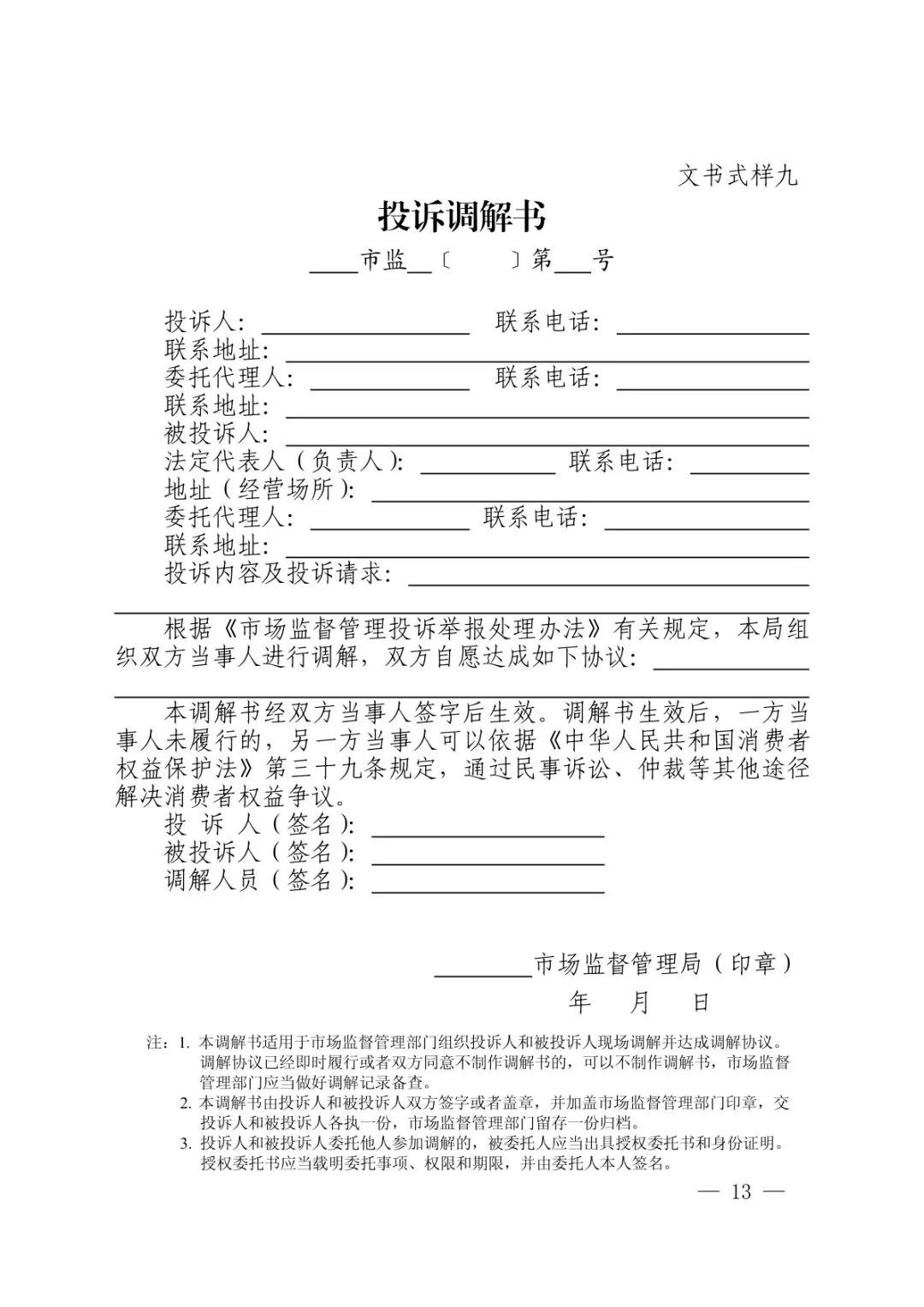 新!市场监督管理部门处理投诉举报文书式样(2026新版)
