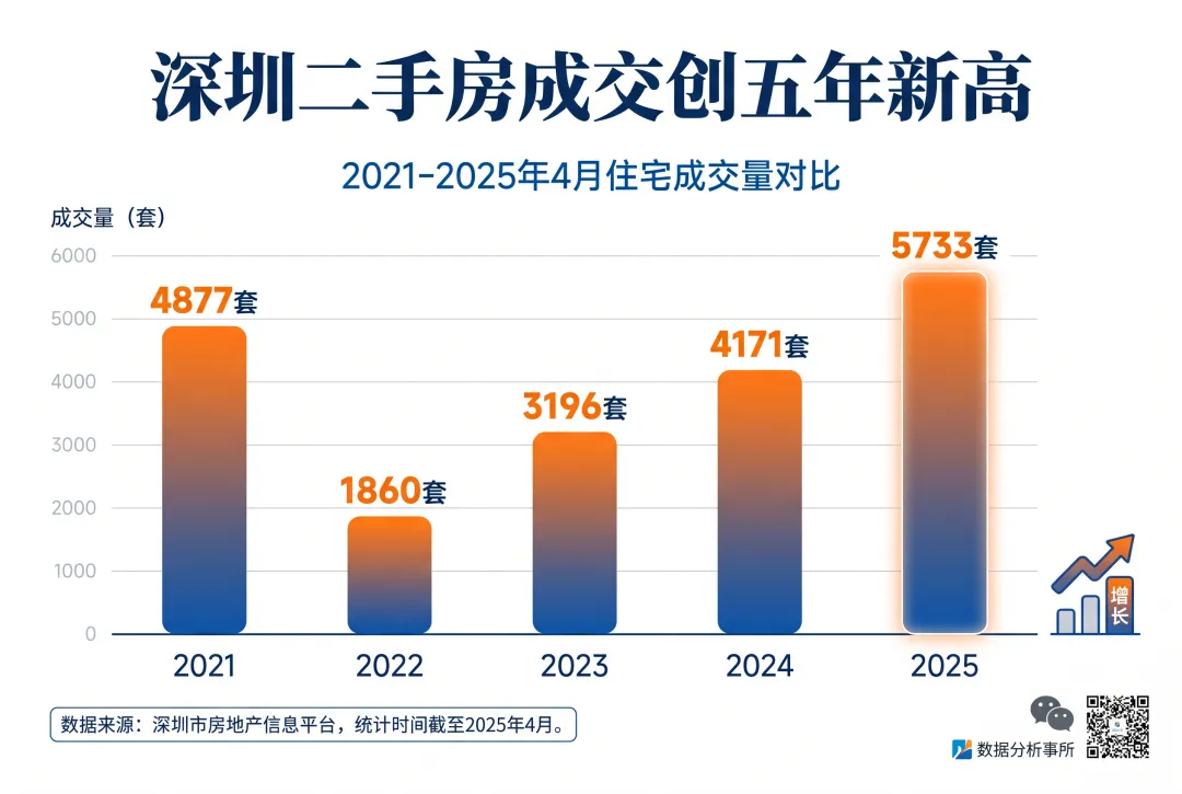 我们先来看看二手房市场的数据。2025年4月,深圳二手房住宅网签量达到5,733套。这个数字意味着什么?让我给你做一个横向对比: