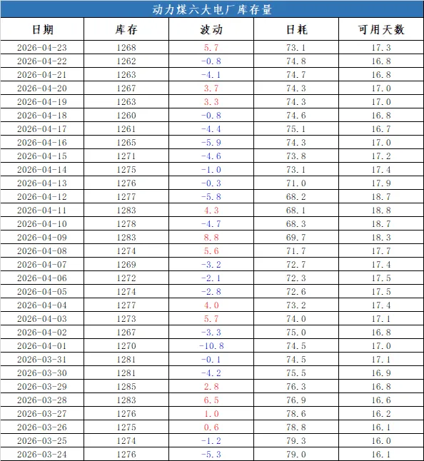 注:六大电厂日耗为大唐、华能、上海电力、粤电、浙能、华电。