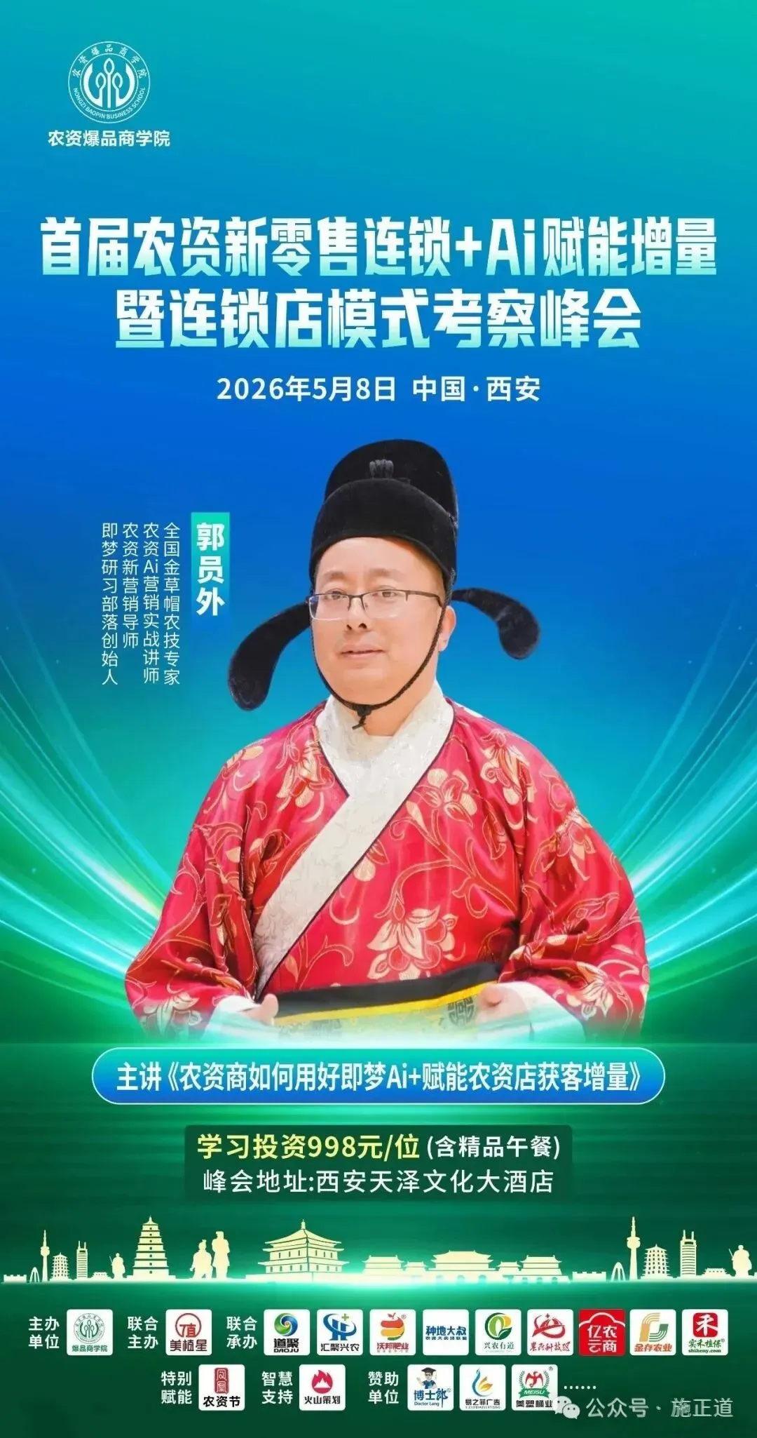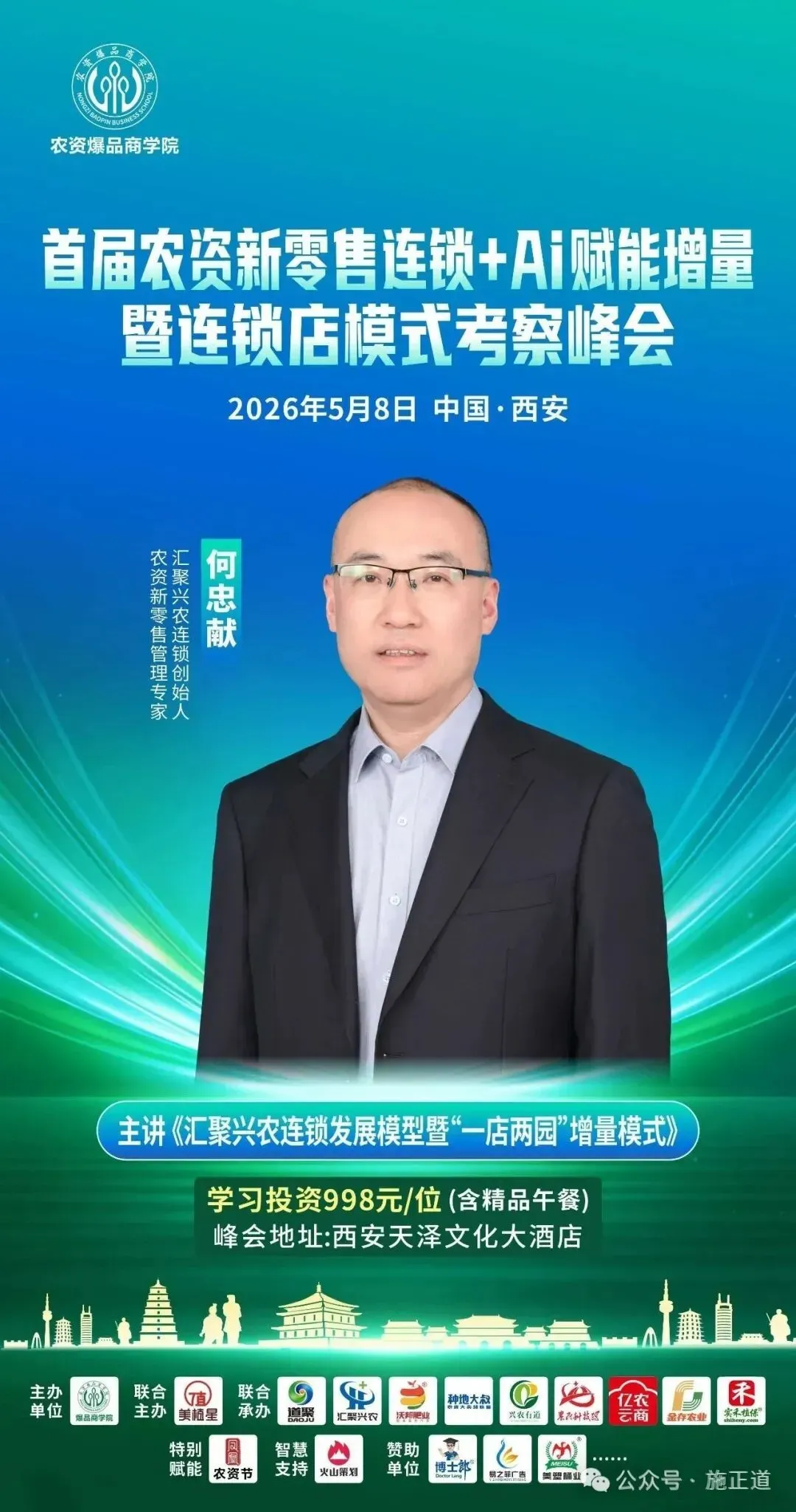 没有空洞理论,全是实战干货;没有泛泛而谈,全是落地技巧。5月8日,相约美丽西安,与行业精英面对面交流,学习先进模式,对接优质资源,彻底摆脱经营困境。     农资行业变革已至,传统模式无路可走,唯有破局才能重生!别再犹豫、别再观望,抓住这次学习机会,抢占新零售赛道先机,让你的农资生意重回巅峰!
