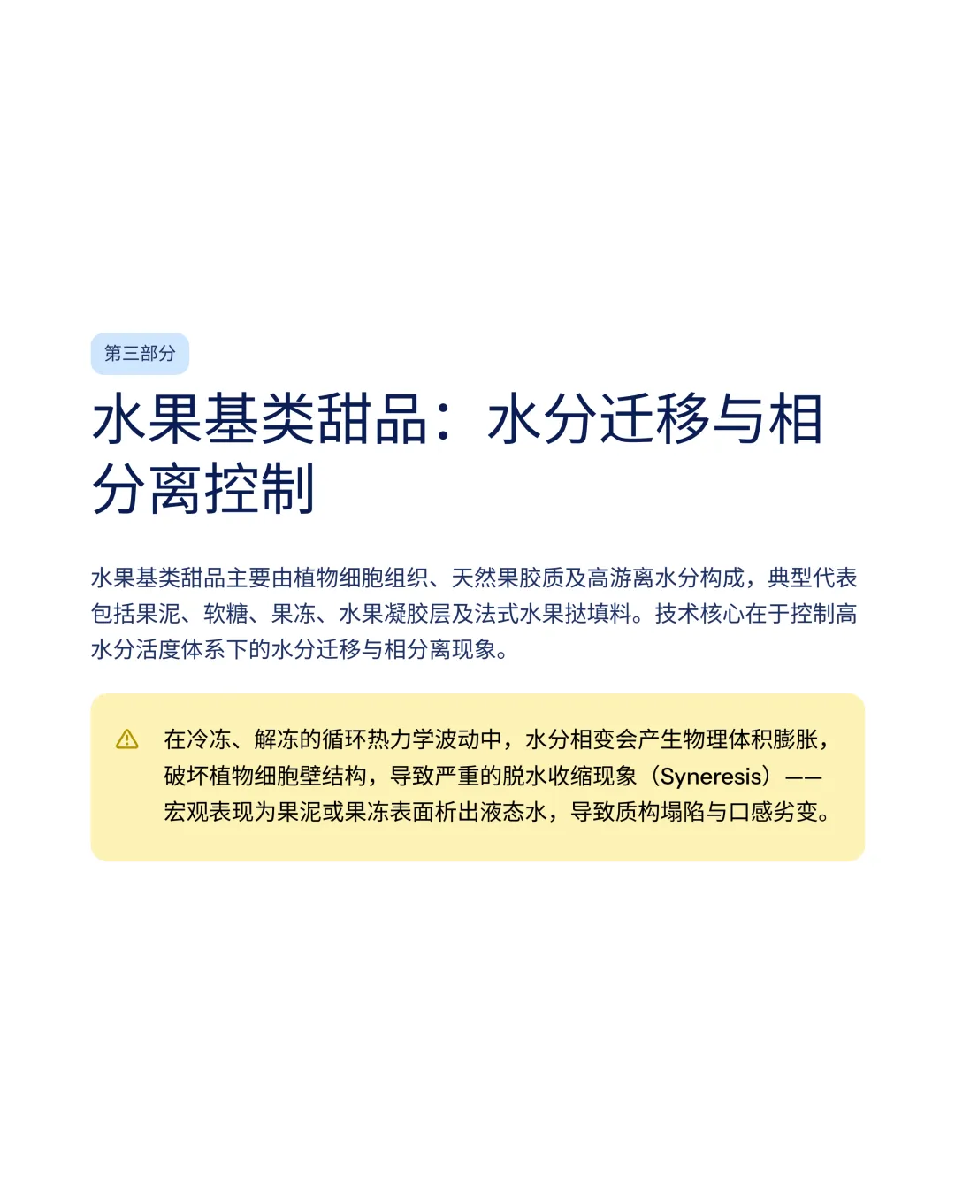 水果基类甜品广泛采用提取自海藻或微生物的高分子水胶体,以控制高水分体系的相分离现象。