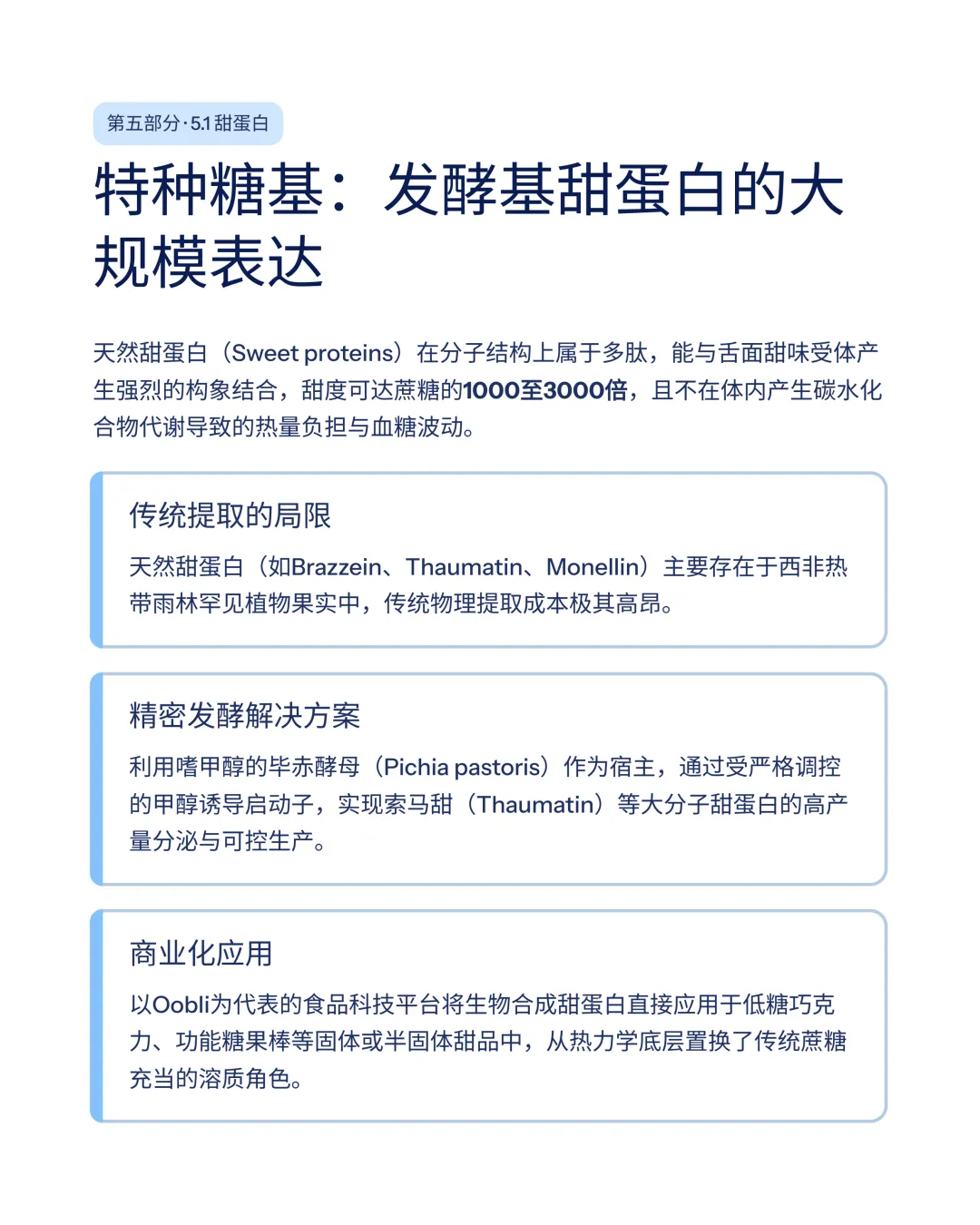 利用嗜甲醇毕赤酵母进行的大规模生物发酵,实现了大分子天然甜蛋白的高产量可控分泌。