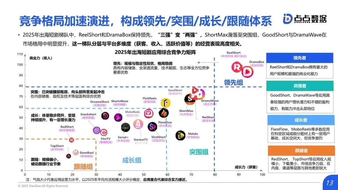 市场竞争格局清晰,ReelShort、DramaBox 稳居头部,DramaWave 靠 AI 成为黑马。Netflix、迪士尼等巨头也纷纷入局,行业从粗放买量,转向精细化运营和本土化创作。