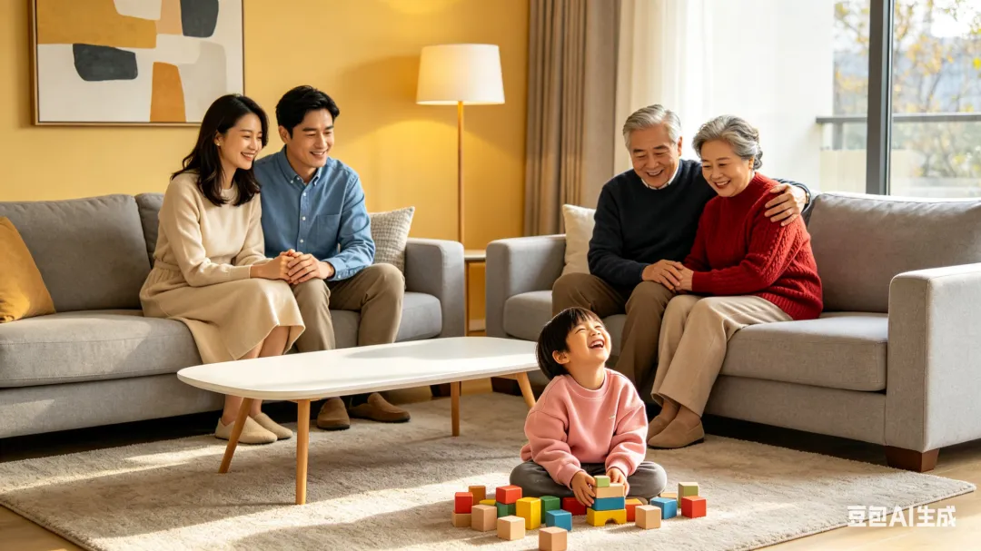 三代同堂的“动静分界”:老人在阳台养花,你在可变空间办公,孩子在客厅玩耍——互不干扰,又近在咫尺