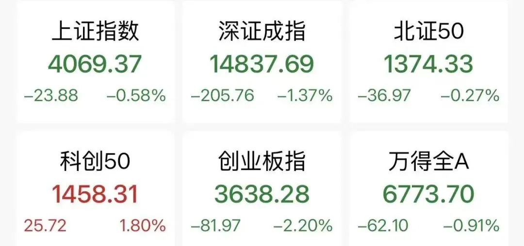 4月24日,截至午间收盘,沪指报4069.37点,跌0.58%,深成指报14837.69点,跌1.37%,创业板指报3638.28点,跌2.2%,科创综指报1852.75点,涨0.66%。锂矿概念股逆势走强,半导体、化工、体育概念表现活跃;油气股走弱,商业航天概念延续调整,通信、算力、军工、贵金属、影视、造纸等板块下挫。