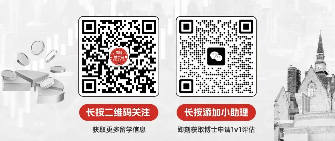🤔P.S.尚且在犹豫的小伙伴们,全球范围内英语授课制的博士项目商商都可以申请喔!添加小助手二维码可立即获取🎓1v1免费咨询评估一次,另外🎁附赠博士申请+奖学金攻略~