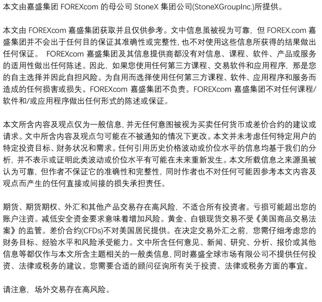 本公众号内容由嘉盛集团FOREX.com提供,不构成投资建议,且不代表本公众号观点,仅供学术研判与参考。