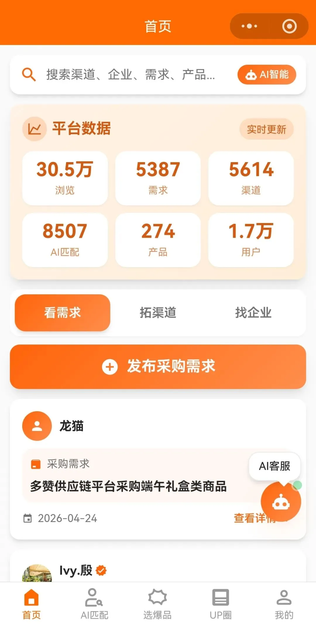 发布产品/对接需求,海量采购需求实时看