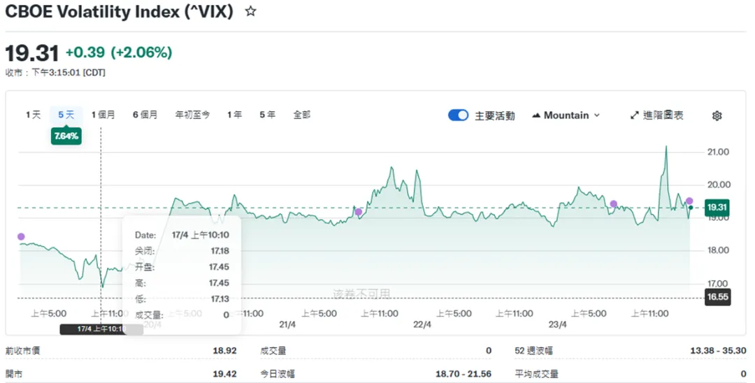 4月17日是VIX期权交割日,交割日后,VIX指数从17的低点反弹,稳定在19-20的水平,CTA买入空间的上限被压制。