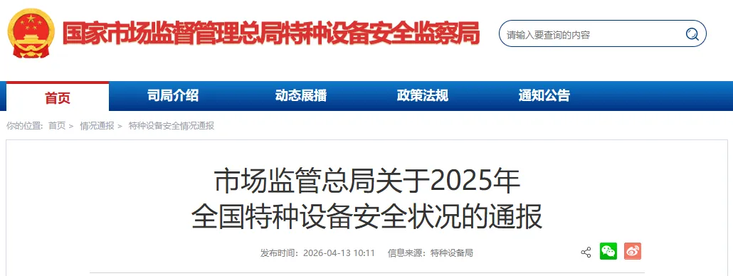 【质量课堂】市场监管总局关于2025年全国特种设备安全状况的通报