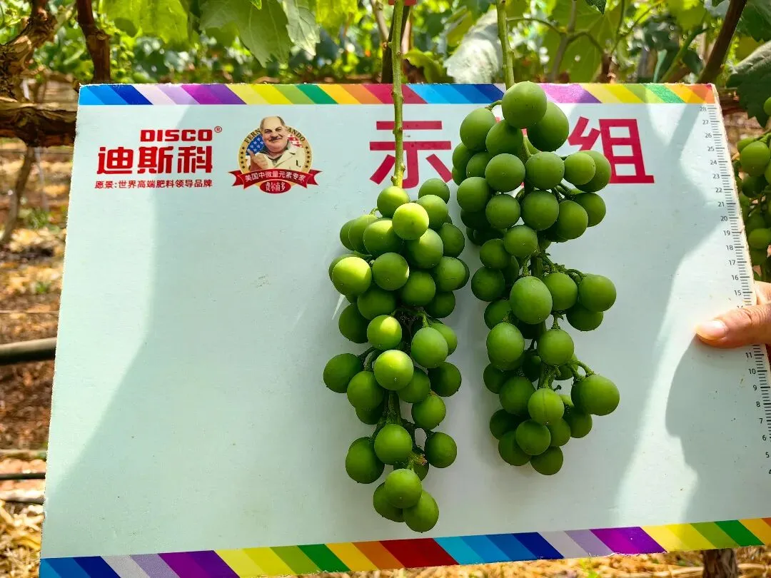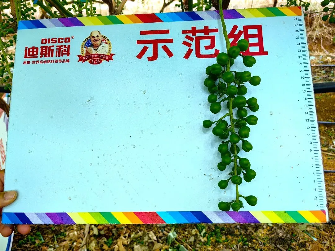 对葡萄种植而言,膨果期的长势是收成的直观体现,这般显著的试用效果,也让刘老板当即决定:“后续的追肥,打算都换上迪斯科!”