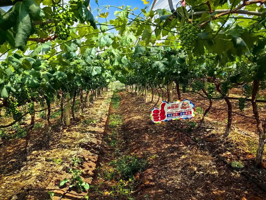云南宾川是我国著名的“葡萄之乡”,全县葡萄种植面积超18万亩,品种缤纷多样。这座高原葡萄城,得益于干热河谷南岸独特小气候,干热少雨,光照时间长,昼夜温差大,非常利于葡萄糖分积累和上色,成熟期比其他主产区要早30-40天。在宾川,迪斯科肥料是果农们高产优产的得力帮手!
