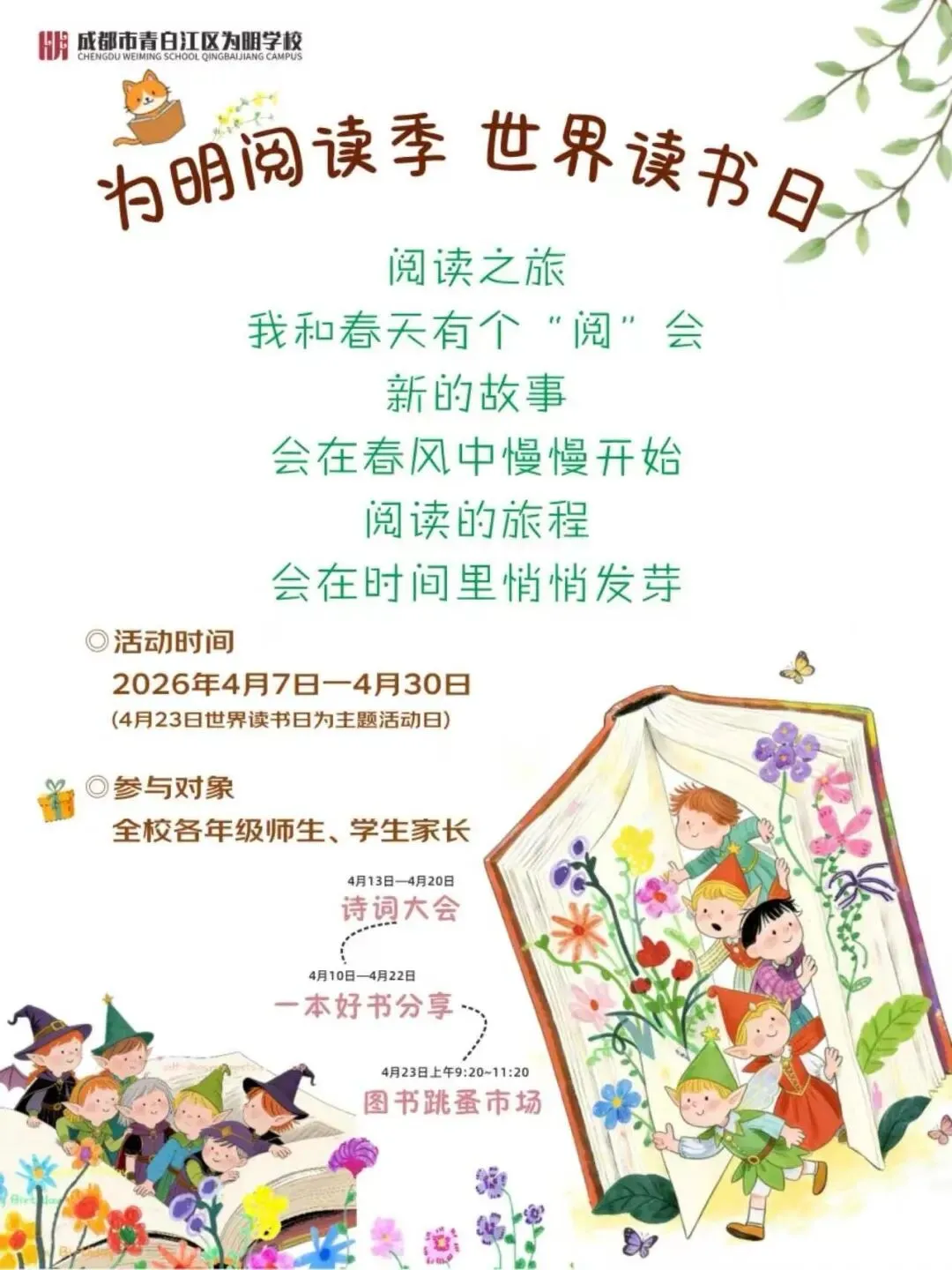 随着初夏的微风轻轻吹过,繁花盛开,暖风醉人,我们迎来了第31个“世界图书日”。青白江区为明学校小学部开展了图书跳蚤市场主题活动。